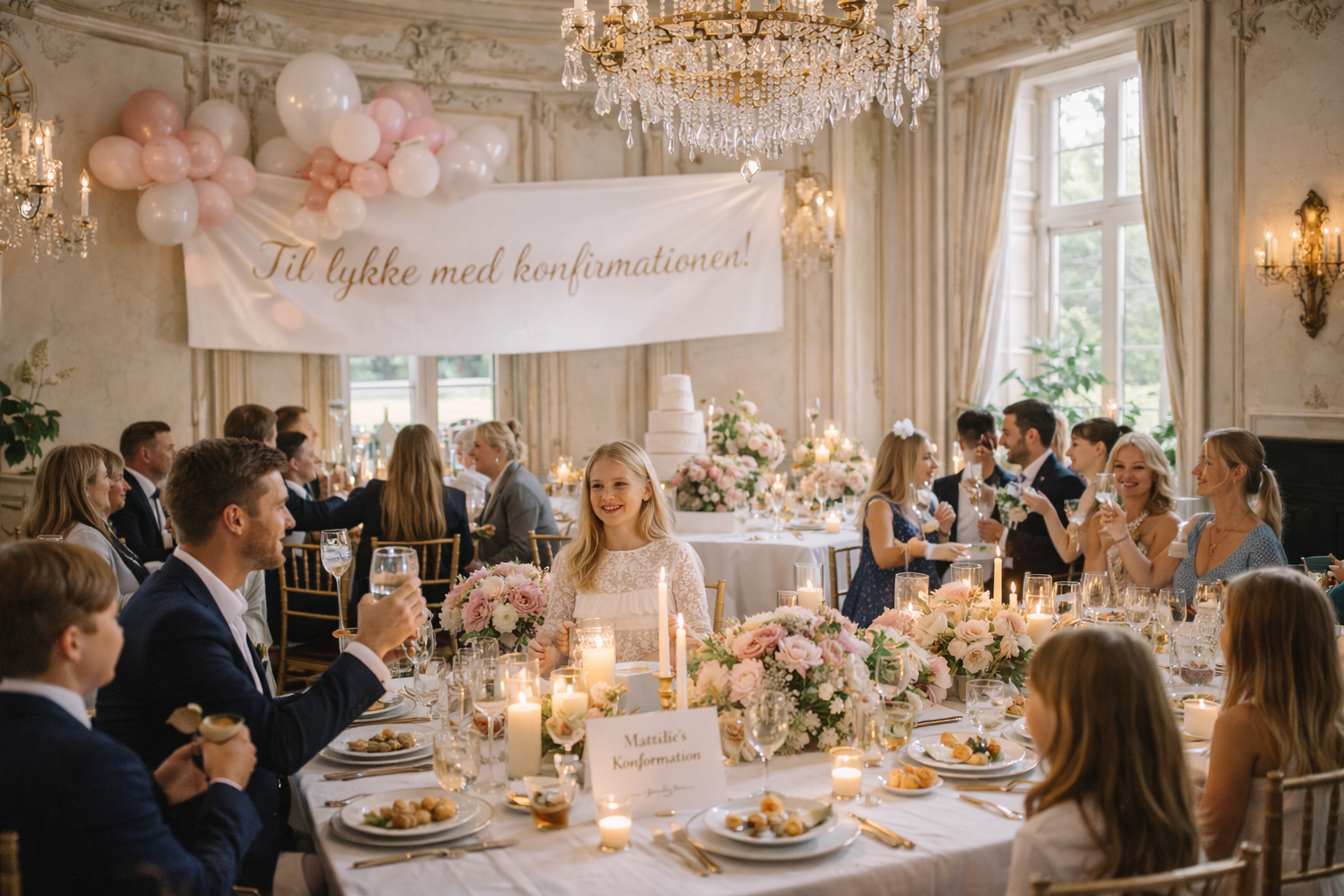 Vi hjælper med at skabe en mindeværdig konfirmation, der balancerer fest, stil og personlighed. Med fokus på detaljer og struktur sørger vi for et elegant arrangement, hvor både konfirmand og gæster får en uforglemmelig oplevelse.