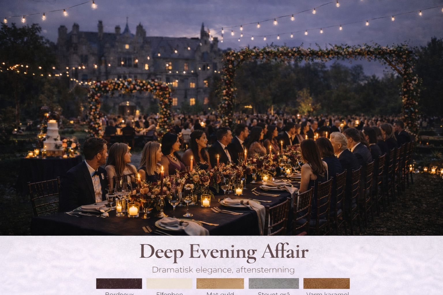 Koncept og æstetik er det, der forvandler en fest fra velorganiseret til uforglemmelig. Når farver, materialer, lys, blomster og rum arbejder i samme retning, opstår der en helhedsoplevelse, som gæsterne mærker – også uden at kunne sætte ord på det.